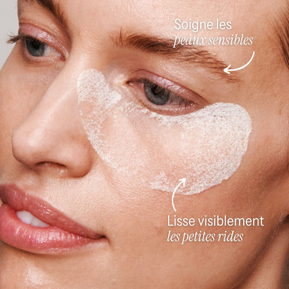 La peau délicate du contour des yeux est particulièrement sensible aux rides et aux ridules. Nous en avons tenu compte dans la composition de la formule. Le collagène hydrolysé et l'acide hyaluronique pénètrent profondément dans la peau et renforcent sa structure de soutien, atténuant visiblement les rides et les ridules et raffermissant immédiatement la peau.