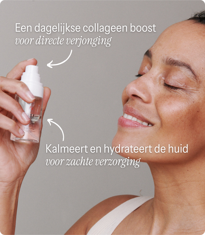 The Glow Duo heeft alles wat je nodig hebt voor een stralende huid. Je krijgt 4x The Mask, ons beproefde masker met ingrediënten zoals collageen, hyluronzuur en propolisextract. Verder krijg je 1x The Mist, onze premium gezichtsnevel die de huid direct hydrateert, verstevigt en een gezonde glow geeft dankzij een mix van hyaluronzuur, gehydrolyseerd collageen en vochtinbrengende ingrediënten.
