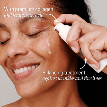 The Serum is a lightweight, fast-absorbing serum that delivers deep hydration, firms the skin, and diminishes fine lines thanks to a blend of hyaluronic acid, collagen, and nourishing ingredients.
